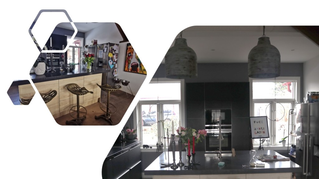 Köket i huset är centralt, husets hjärta, då nuvarande ägare driver närliggande restaurang Perrongen och älskar att laga mat. Med en köksö för socialt ‘häng’ under tiden delikatesser förbereds. Socialt och en aktiv del av vardagen med möjlighet till stora sociala möten med plats för den stora familjen eller de många vännerna.