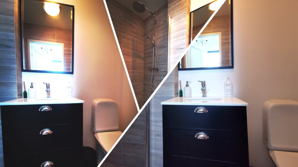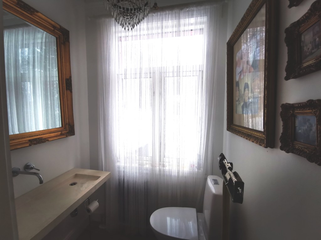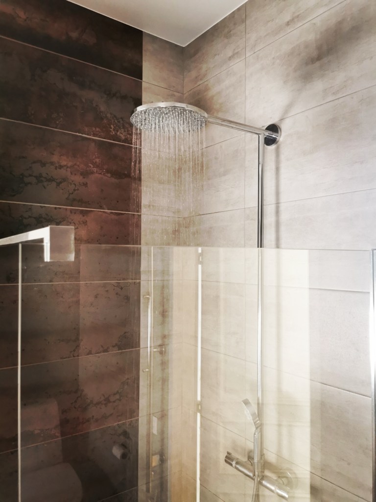 På nedre plan finner man två badrum. Ett badrum, vid entrén, med ett marmorhandfat, kristallkrona och toalett, medan badrummet tillhörande gäst sviten har dusch installerad med ‘rain’ funktion för en avslappnande upplevelse.