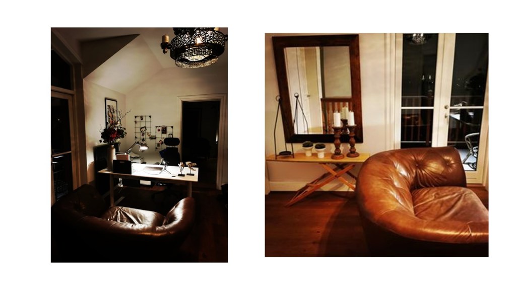 På övre våningen finner man tre rymliga sovrum med ett stort badrum som kombineras för alla. Master sovrum har en ‘walk-in’ garderob och med dörr direkt ut till den stora balkongen. Enkelt att hänga ut lakarna och täcken, samtidigt som en underbar plats att inta morgonkaffet. Balkongen har även en till ingång i vad som idag är nuvarande ägares hemarbetsplats.