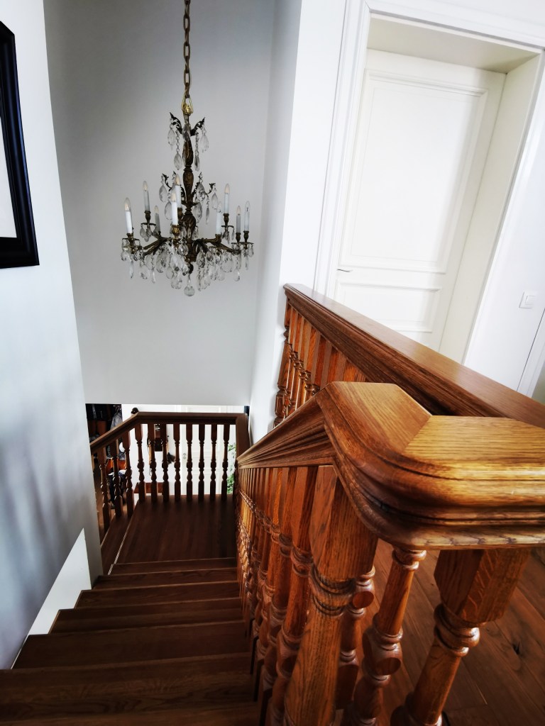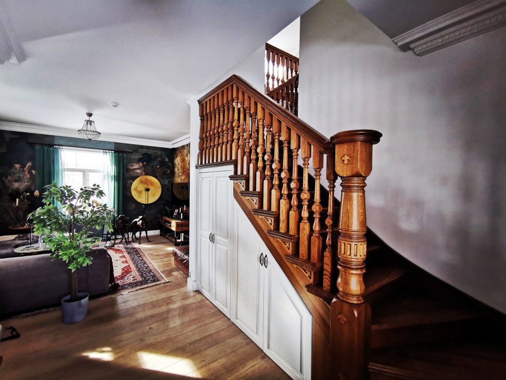 Med plus tre meters takhöjd på båda plan i huset och med platsbyggda fönster, dörrar och interiör, har renoveringen lyckats åstadkomma det gamla med det nya. Husets tidigare ägare hade ej bevarat någonting av charmen från 1895, utan varje detalj har lagts till, undersökts, och där ingen utgift varit för stor för att uppnå ett helt makalöst resultat. Den magnifika ek trappan som möter en när man kommer in i huset är minst sagt imponerande. Ett riktigt hantverk.